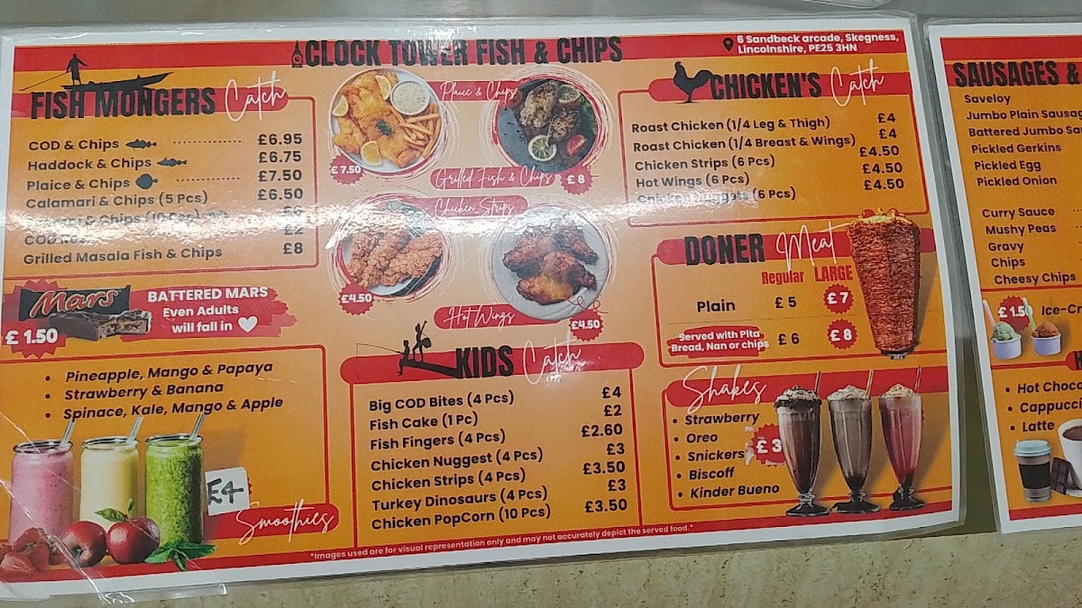 The portion sizes are noteworthy; Mark's experience highlights that the meals are substantial enough to feed two, offering exceptional value for money. While there may be minor improvements needed in maintaining cleanliness, the overall quality of food makes Clock Tower an easy recommendation for your next meal in Skegness.